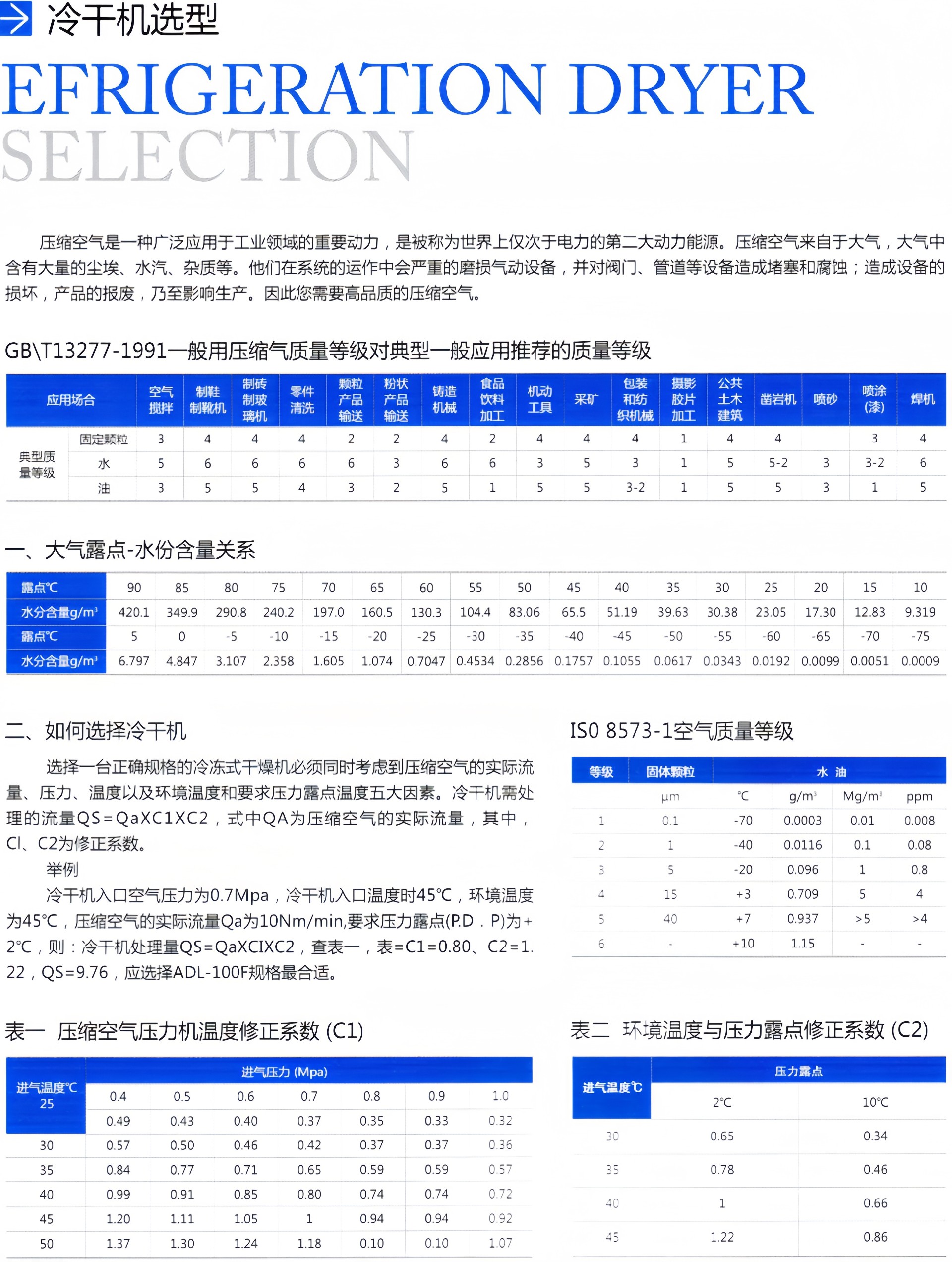 为使冷冻式干燥机在不同工况下,使其能够稳定和节能运转,欣靓牌冷冻式干燥机根据客户需求和实际使用工况分为:高温风冷型、高温水冷型、常温风冷型和常温水冷型。